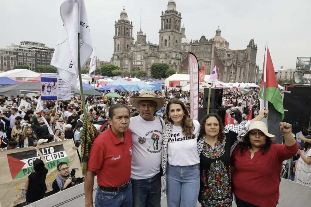También agradeció la solidaridad del pueblo mexicano y llamó a no guardar silencio ante los crímenes cometidos en Gaza. La diplomática cerró con una frase poderosa que retumbó en la Plaza de la Constitución:
